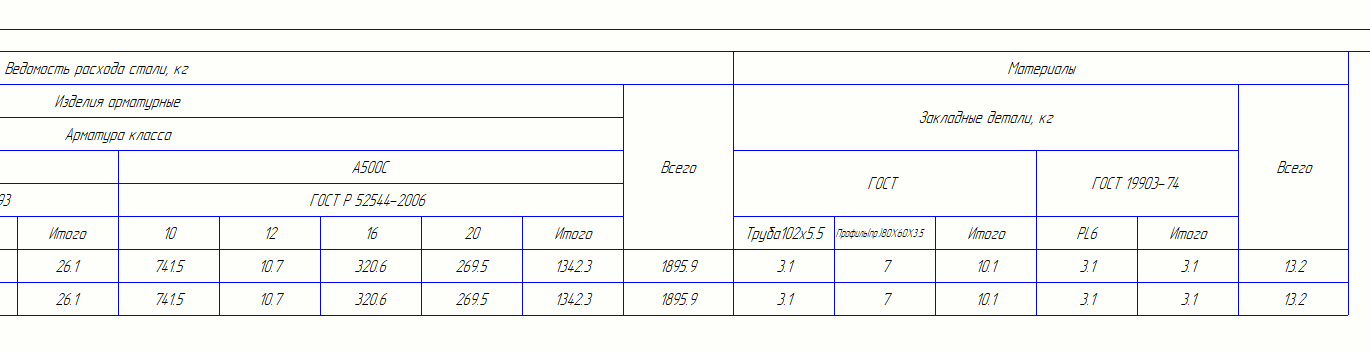 Re: Ведомость расхода стали горизонтально (КЖ)