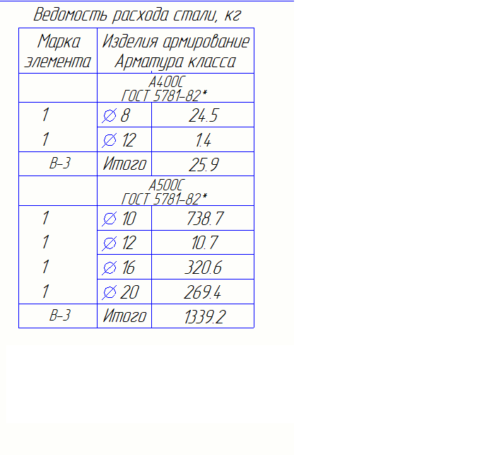 Ведомость расхода стали горизонтально (КЖ)