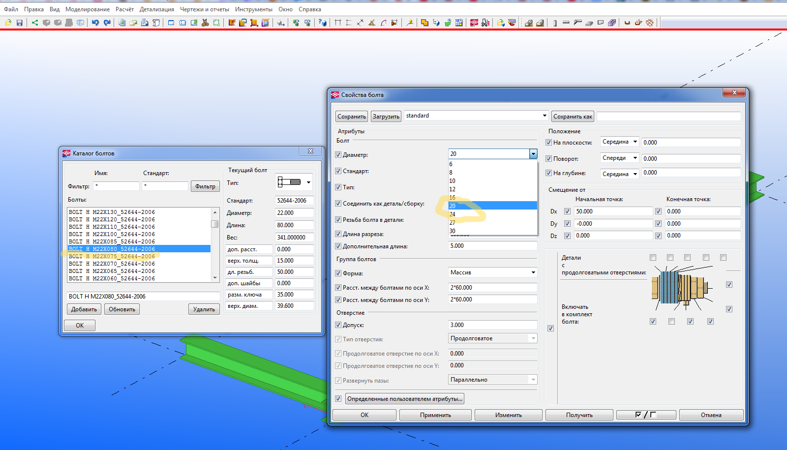 Приветствую всех. Попался проект КМ, в котором все болты запроектированы как ВПБ22*. Как добавить в каталог 22 диаметр? В "Детализация - Болты - Каталог" болтов они есть, но программа кричит при попытке добавить их, потом предлагает сохранить изменения в папку, но во вкладке "Свойства болта" их опять нет. Версия 21.1.