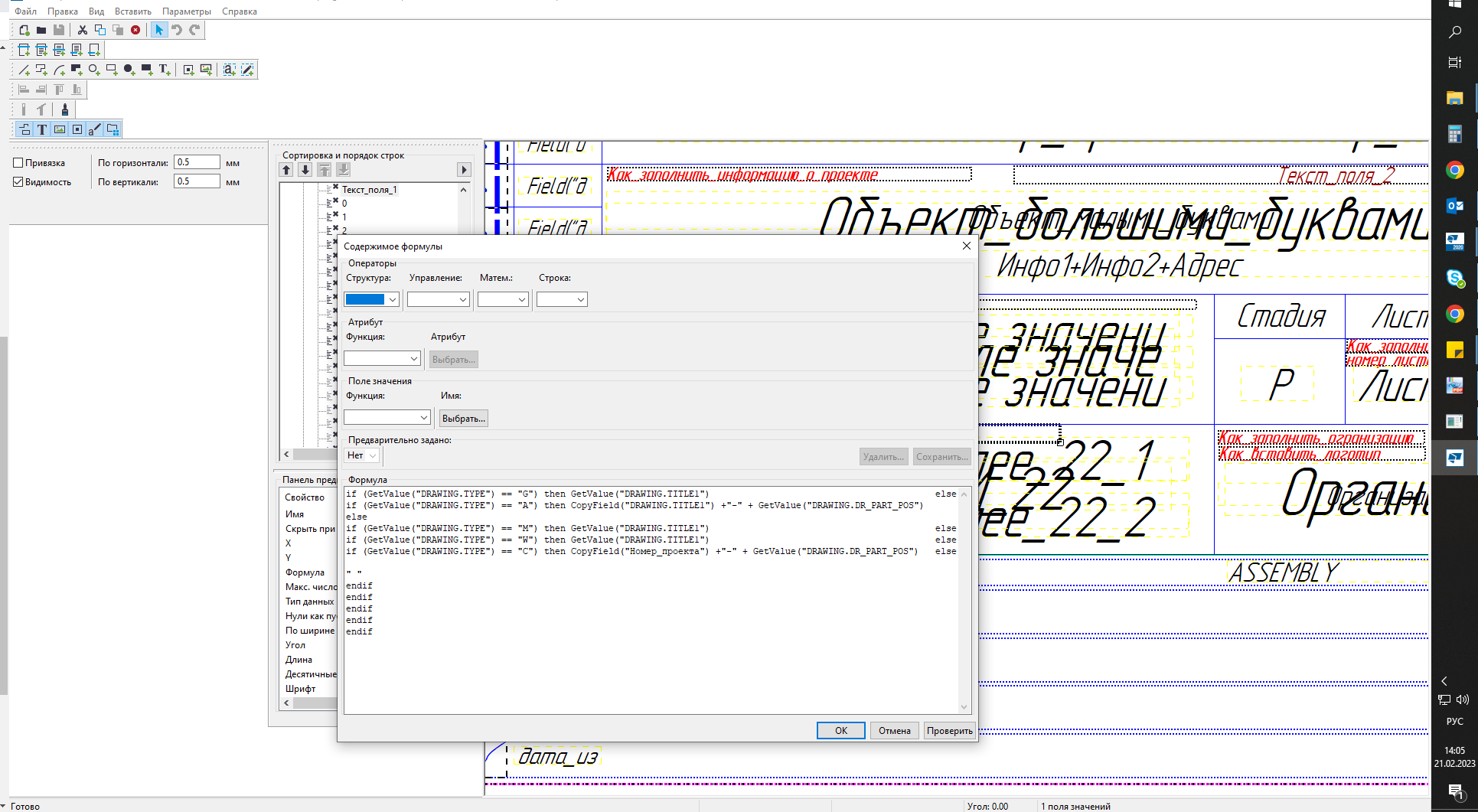 . В штампе не отображается ни префикс сборки ни название детали. На всякий случай прикреплю скрин формул...