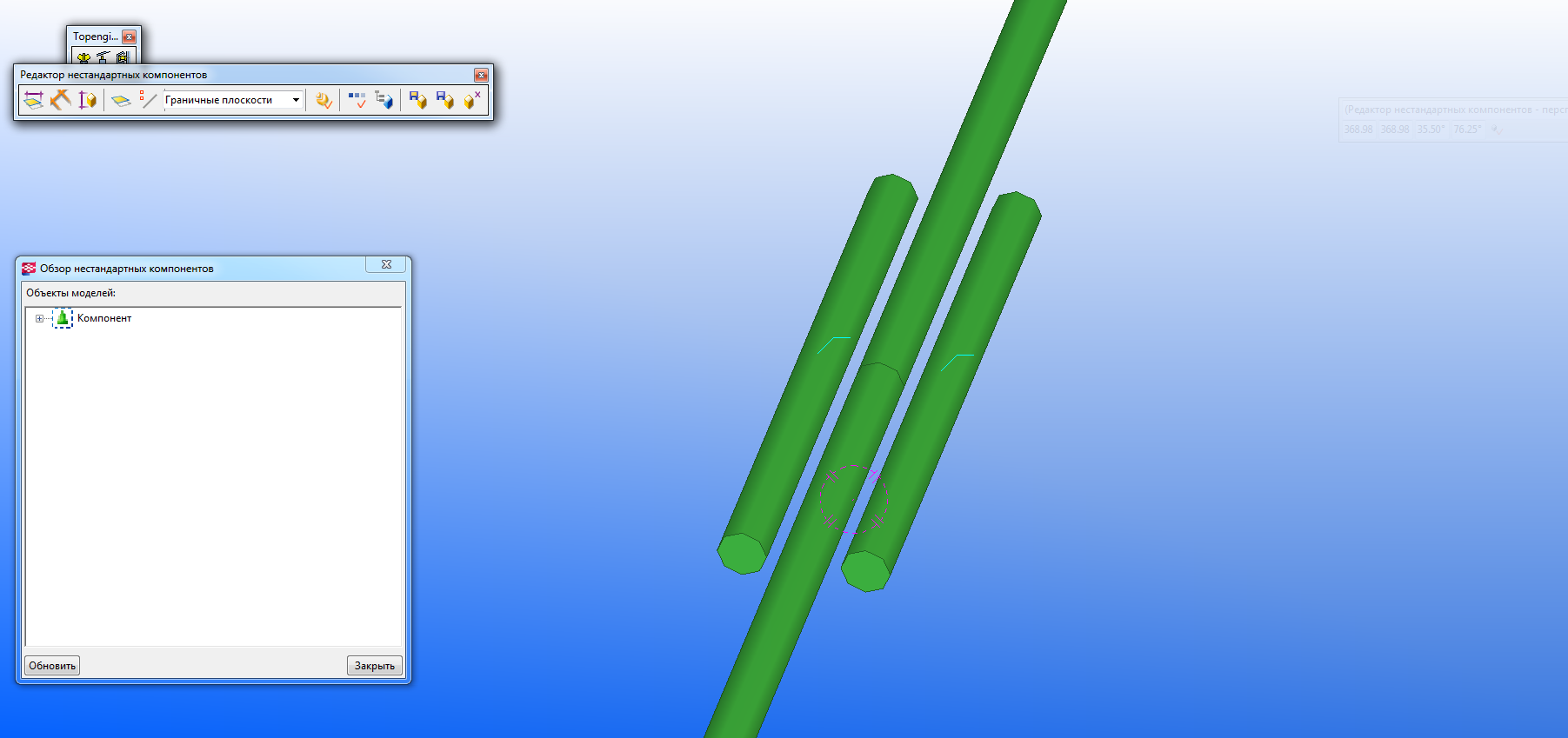 Есть чертеж того что надо получить?troy-47 писал(а):Здравствуйте, подскажи, создаю пользовательский компонент соединения арматурных стержней. при смене профиля арматуры остаются зазоры между коротышами и основными деталями, как правильно их привязать что бы зазоров не было при изменении профилей?