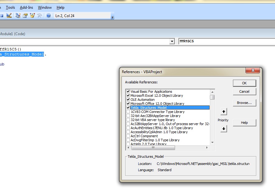 Ну хотябы в excel подключите "Tekla_Structures_Model" и посмотрите чего там есть.