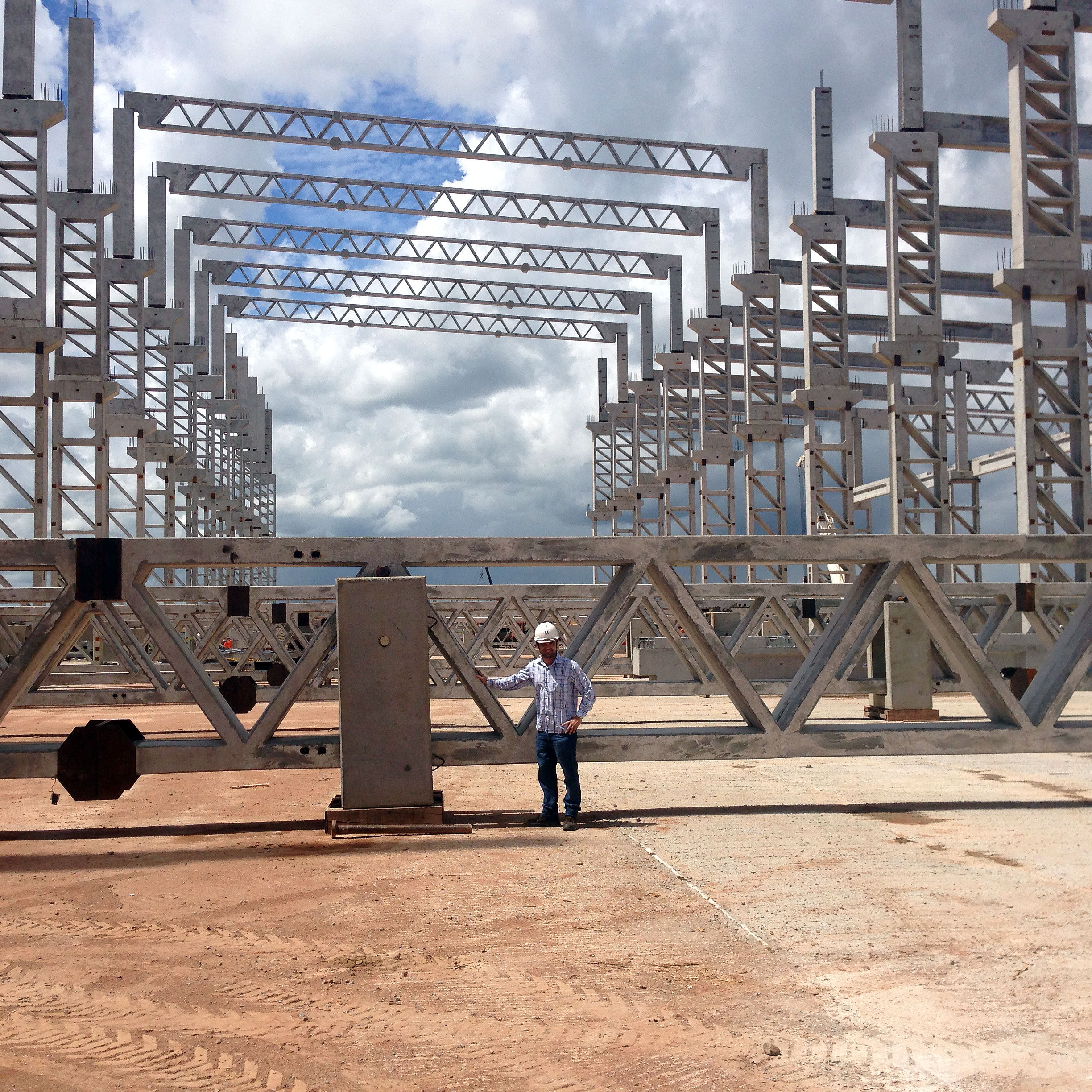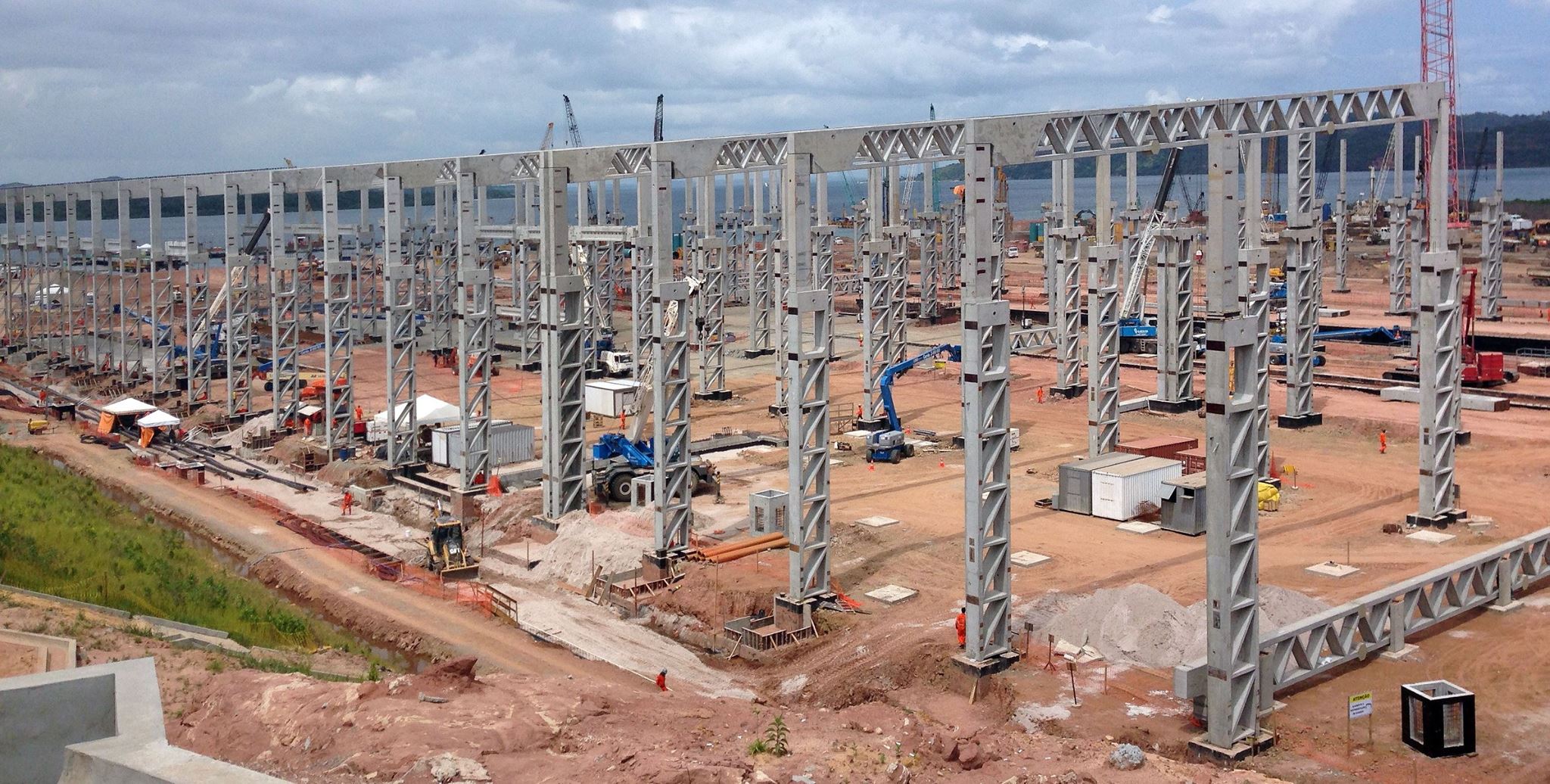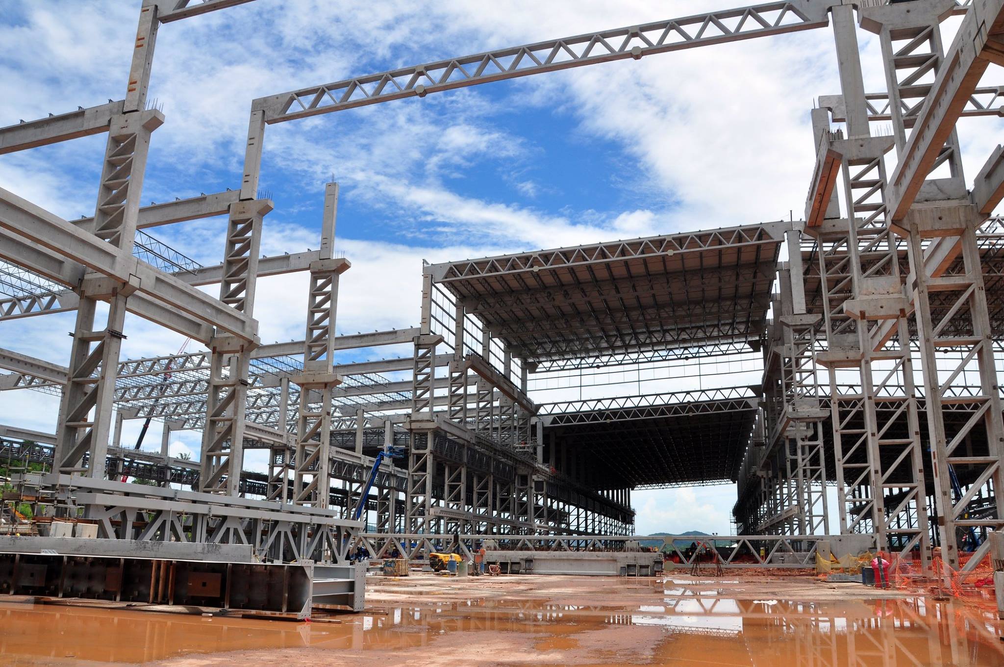 Сначала подумал, что внутри будет какое-то хим производство, убивающее металл. Но это верфь http://www.cimentoitambe.com.br/estalei ... fabricada/ Колонны 35 м, пролет 41 м. Внутри ездят 23 крана. В 110 км от стройки отливали и возили сборняк на объект монтировать.
