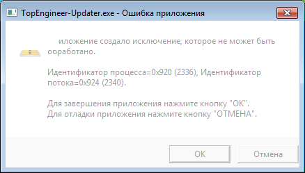присоединяюсь. Галки сами включаются, и даже при выключенных галках обновление пытается произойти, но вылазит ошибка.Алексей писал(а):Убираю галки в TopEngineer Updater 1.1.1.19 напротив строк "Автоматически обновлять доступные среды" и "обновлять шрифты", так как мне не нужно обновлять среду. Все настроено так как надо и стороннее вмешательство крайне противопоказано. НО! При перезагрузке галки напротив этих строк появляются вновь. Ранее возникал вопрос форумчан о снятии галки напротив строки "Xplugin - вкл/выкл" и этот вопрос был решен. Почему бы не предусмотреть гарантированное отключение указанных на скрине функций?