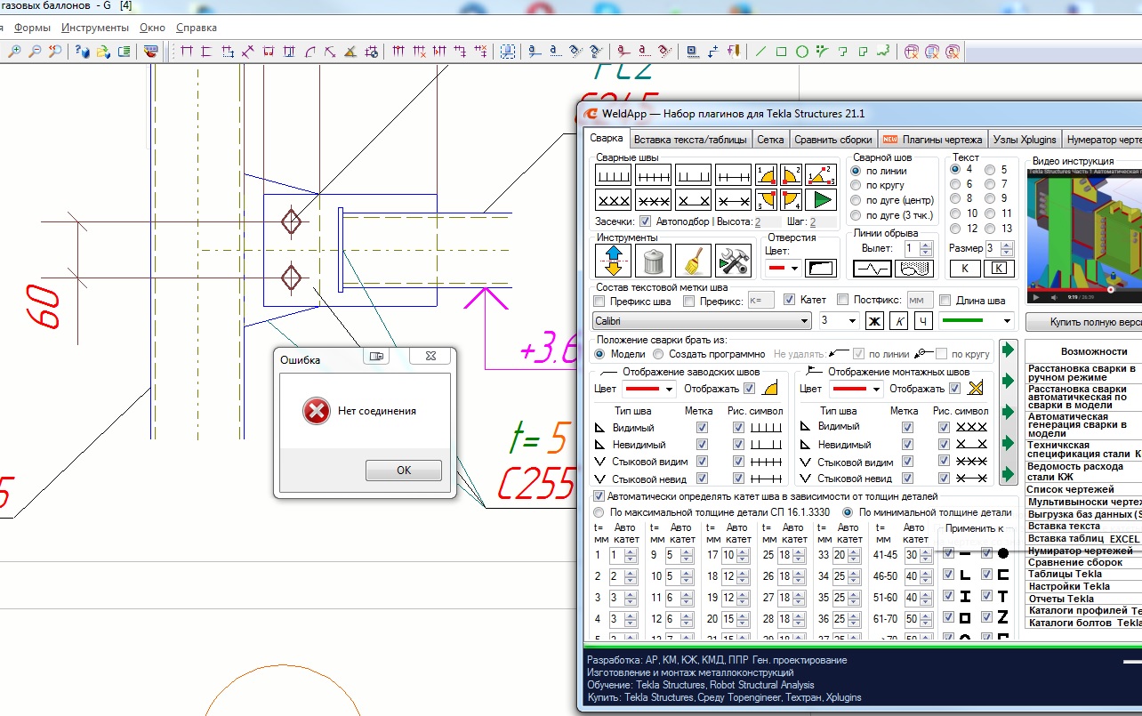После обновления версии 1.1.2.50 Велдар перестал работать в чертежах. В модели он исправляет швы, а в чертеже их отображать вообще не хочет. Выползает ошибка "Нет соединения". Подскажите как решить эту проблему.