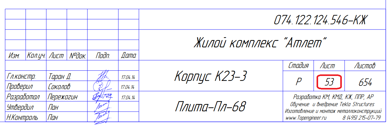 Как заполнить номер листа в штампе чертежа Tekla Structures