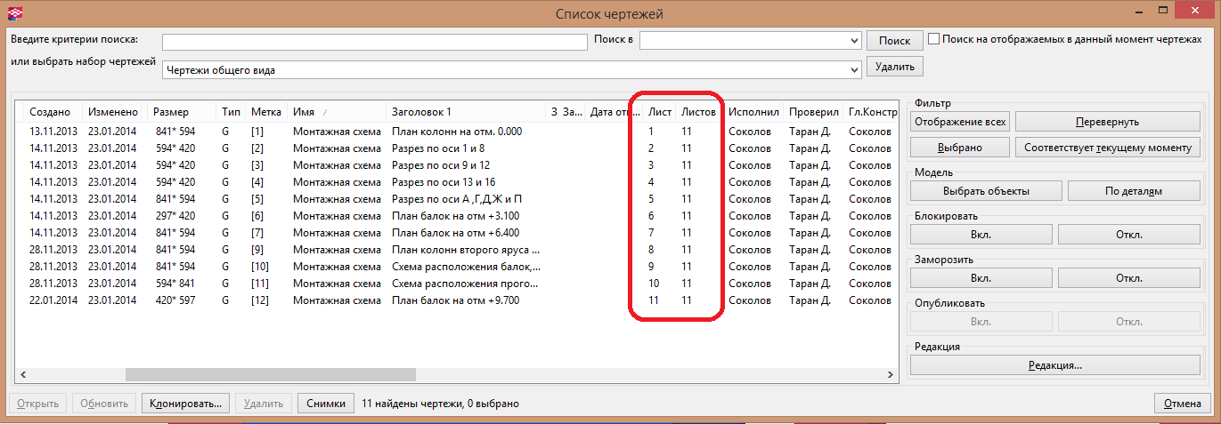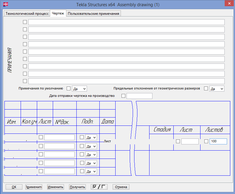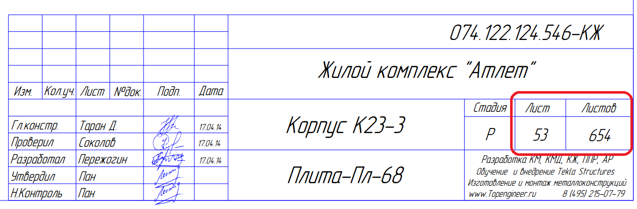 Как заполнить количество листов в штампе чертежа Tekla Structures