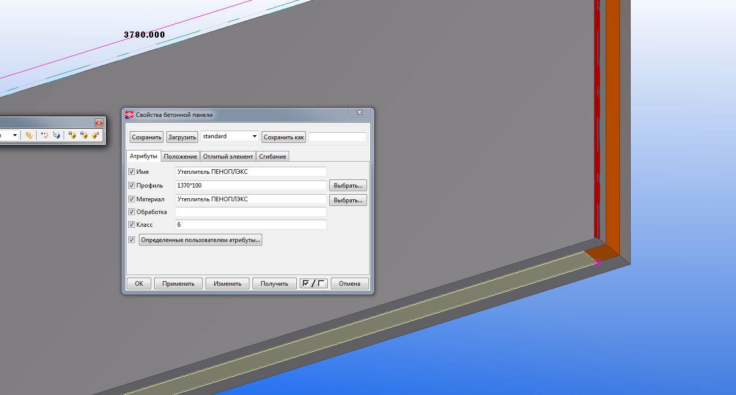 Делалось бетонной панелью, потом ей добавлялся материал - ПЕНОПЛЭКС, который добавлялся путем редактирования в списках материалов