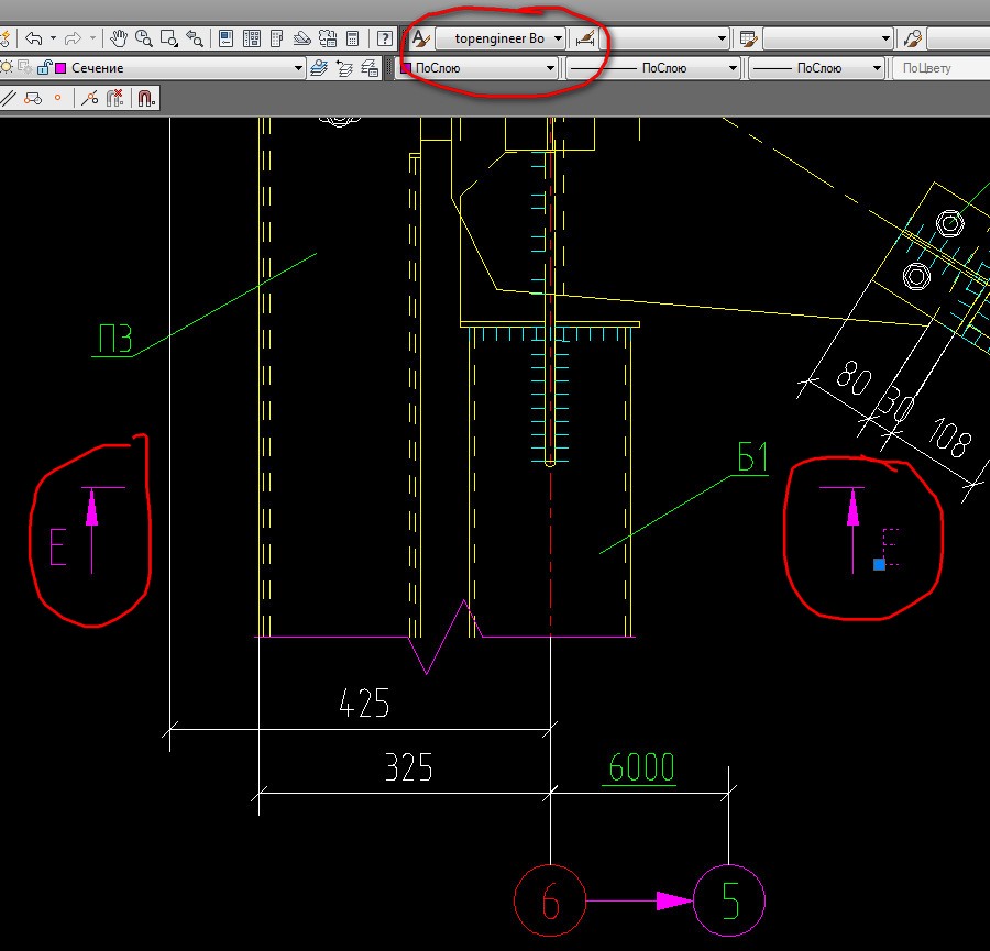 Все вроде так и выглядит (не считая наклон шрифта) и шрифт topengineer в метках разрезов. Но вместо цифр- A, B, C, D, E и т.д. В самом topengineer латинские буквы заменены цифрами, почему в автокаде вылазят буквы?DrBianko писал(а):Вообще так и должно экспортироваться, шрифт в автокаде должен оставаться topengineer. И все выглядит как в Текле (главное что бы шрифты эти установлены были)