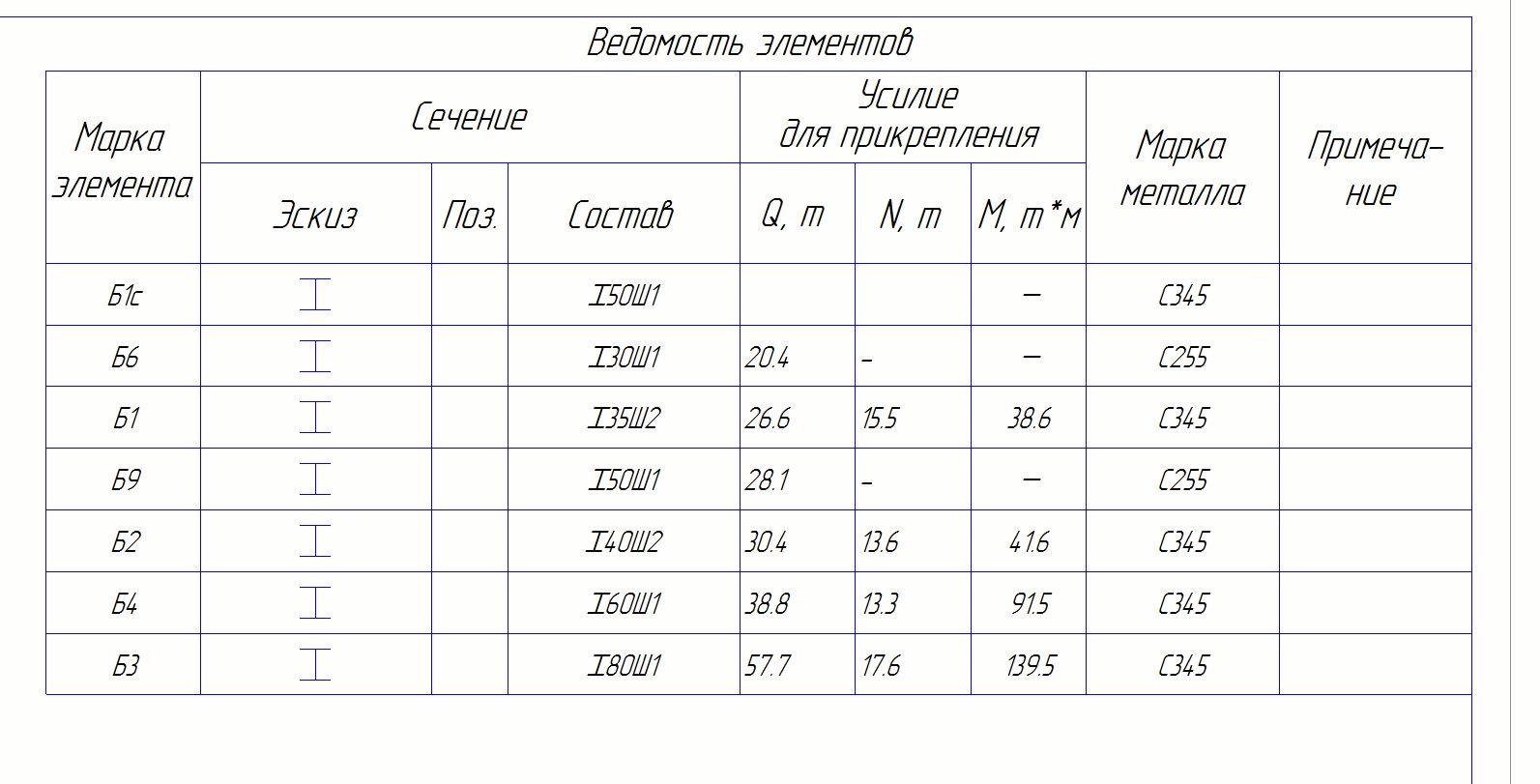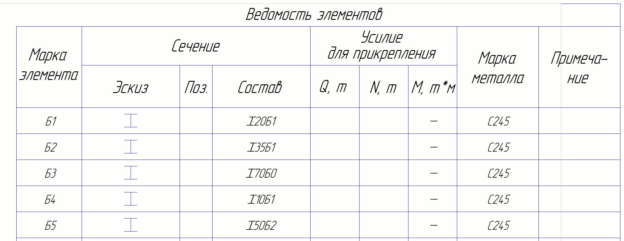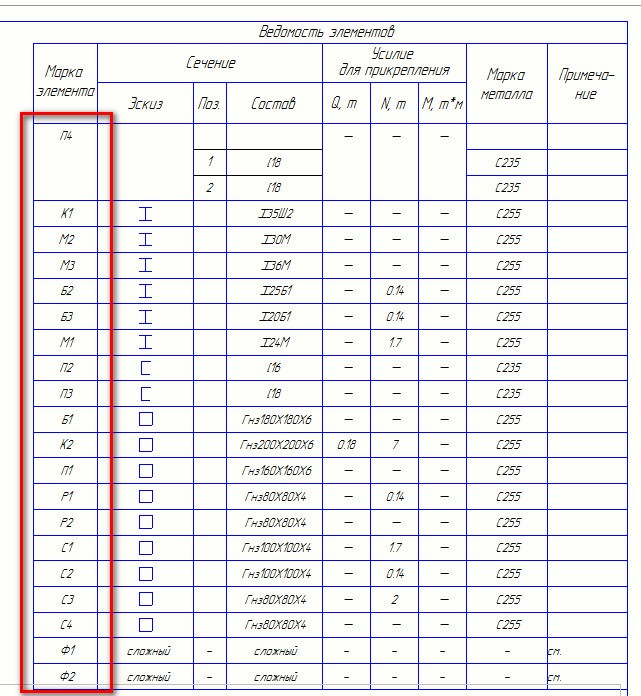 Ведомость элементов в КМ Tekla Structures