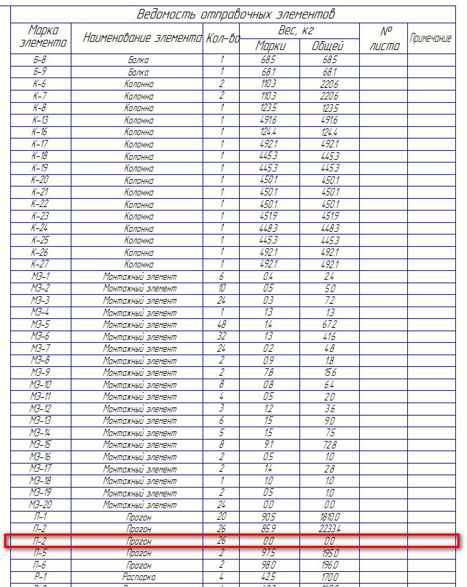 Re: Ведомость отправочных элементов