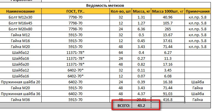 А ничего что в екселевкой половины метизов нет?? Наверное создали из выбранных, конечно так ничего сходиться не будет