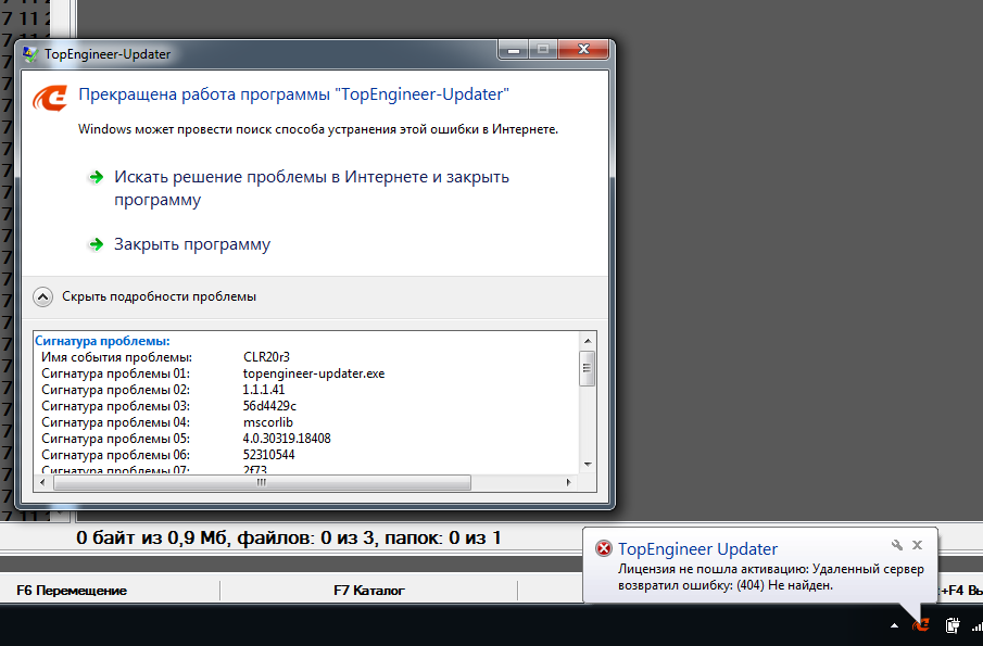 появляется окошко апдейтера и спустя немножко сообщение о том что прекращена работа...