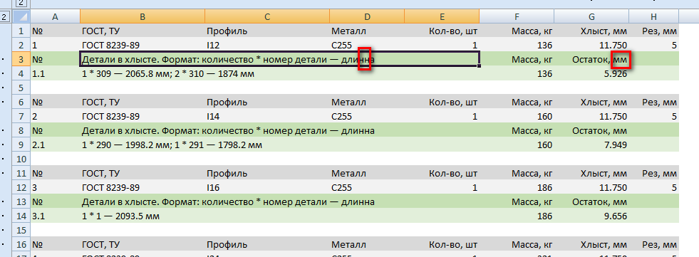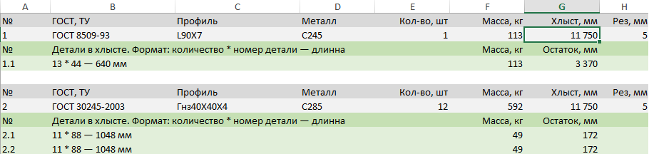 Re: Ведомость раскроя профильного проката