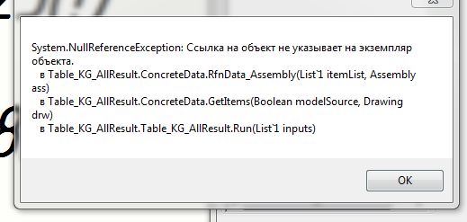 Не выдает ведомость расхода стали в КЖ. Вываливается ошибка.