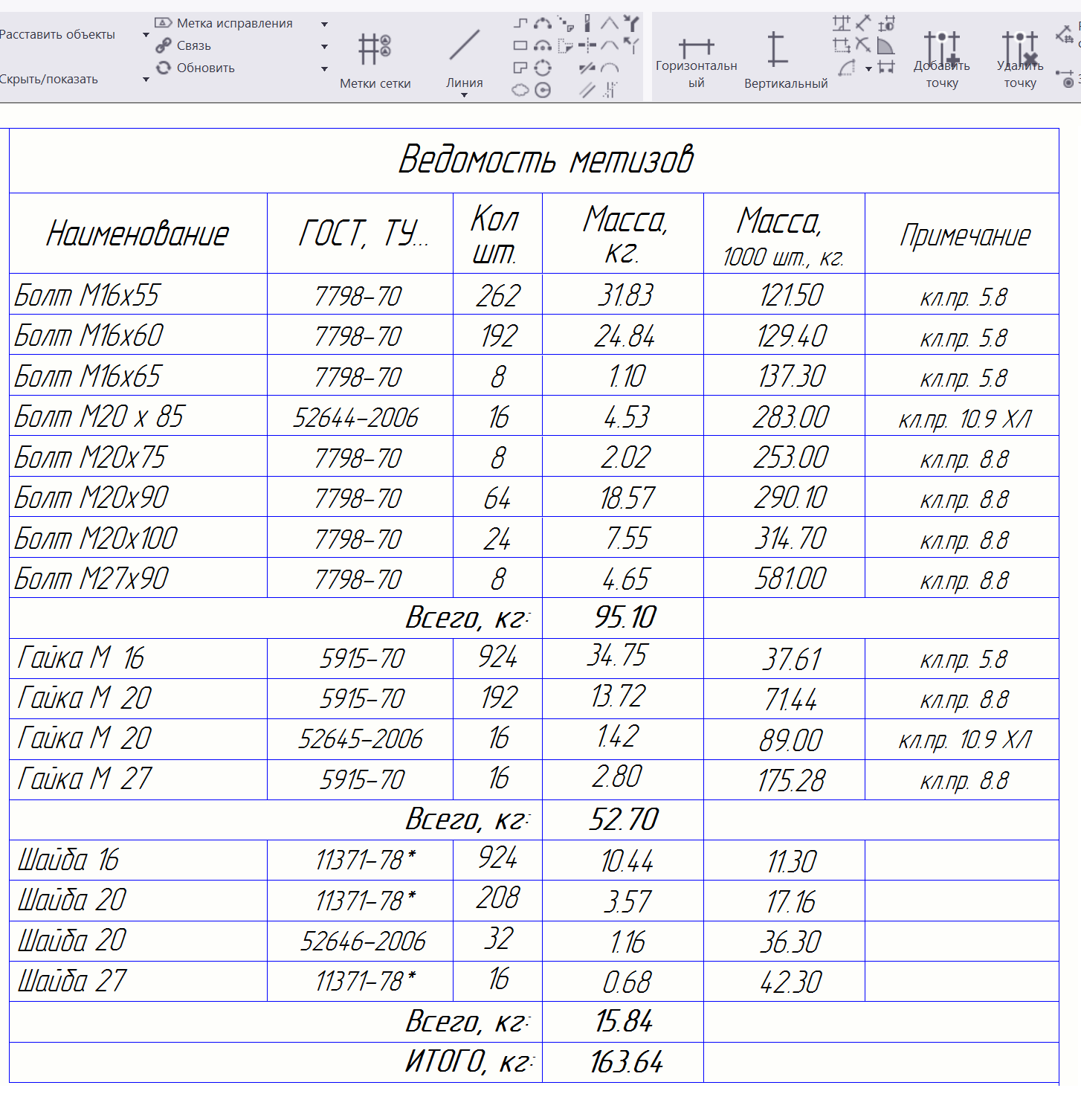 1) Вставляй ведомость метизов через эксель так лучше. Чертеж не будет тупить.
