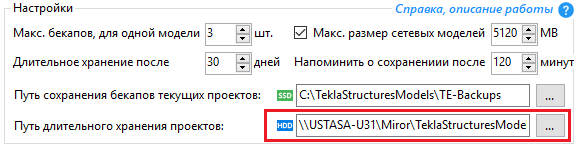 Если нажать на это сообщение, откроется вкладка с бекапами, путь можно заполнить в поле «путь длительного хранения».