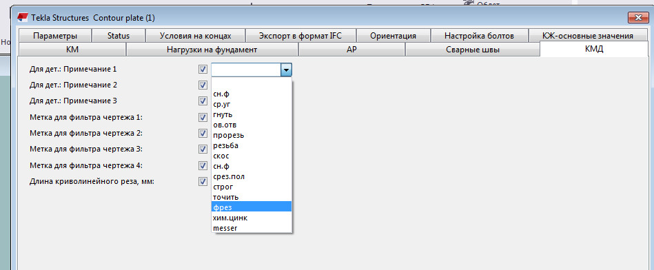 Определенные пользователем атрибуты Tekla Structures (фаска....)