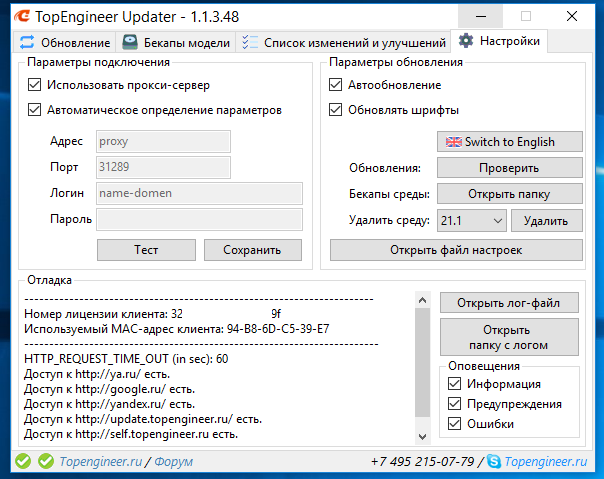 Кто может подсказать или помочь с проблемой - не активируется среда "Топинженер". Перешел на новый компьютер и предварительно запросил смену ключа доступа. После ввода онного ничего не происходит. Пробовал и через вай-фай роутер и напрямую через шнурок интернет. Прикладываю скриншоты и лог файл апдейтера . Спасибо!