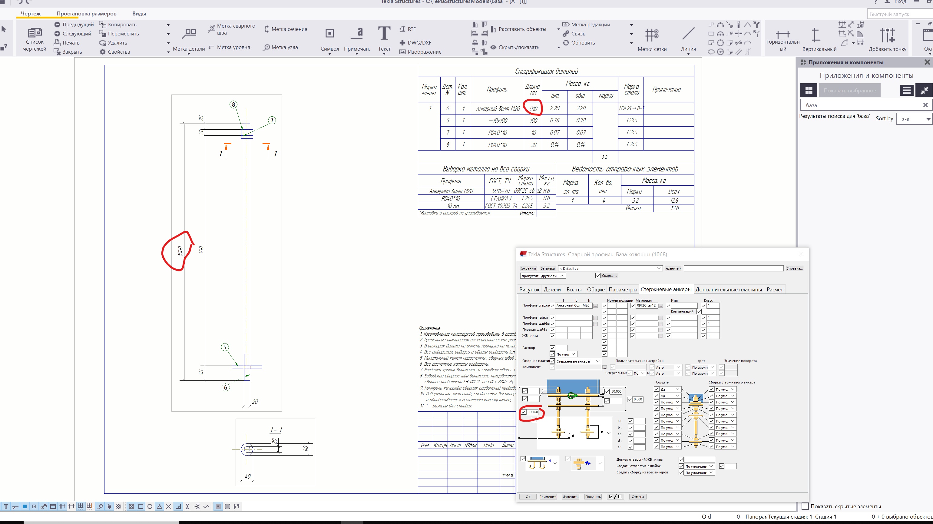 Длинна анкерного стержня Tekla Structures