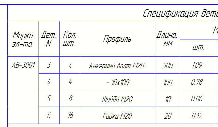 Некорректно отображается длинна анкерного стержня в спецификации.