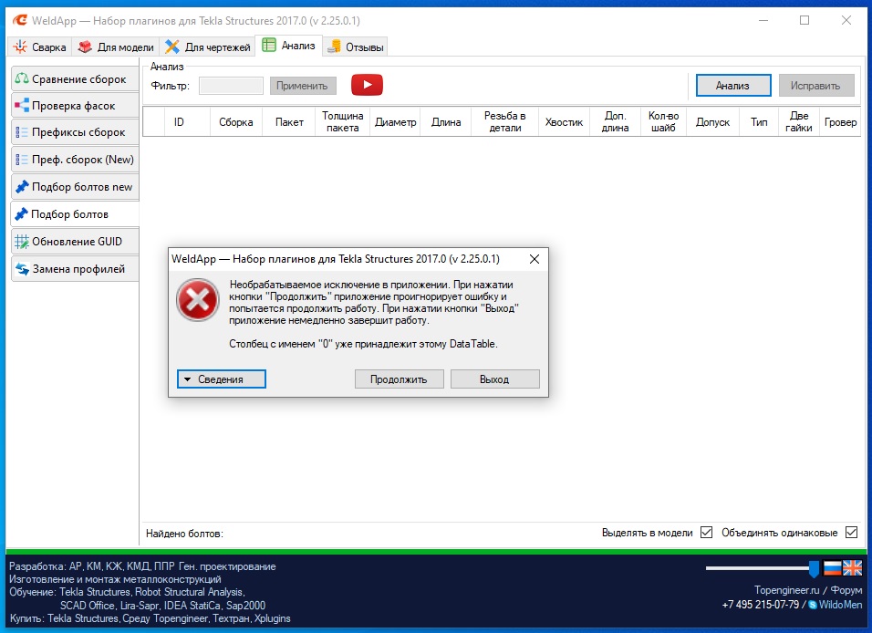 Не работает анализ болтов