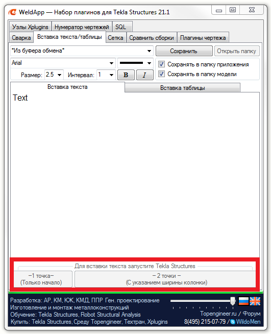 Так и произошло. После обновления WeldApp функция "вставка текста" снова заработала. Большое спасибо за быстрое реагирование!Obelus писал(а):Ordog писал(а):В сегодняшнем обновлении это должно исправится