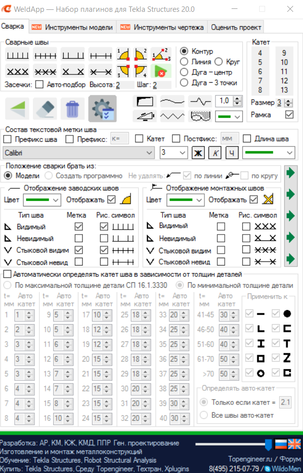 Версия теклы 2019, билд 45588. Weldapp v.2.20.9.25 не проставляет сварные швы по линии не ставит засечки а ставит угловой шов, по контуру если контур из 3 линий то крайнюю игнорирует, меньше линий не ставит вообще, автоматическую сварку из модели проставляет только на одну позицию а остальные игнорирует.