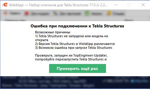 При запуске WeldApp выдает ошибку при подключении к Tekla Structures