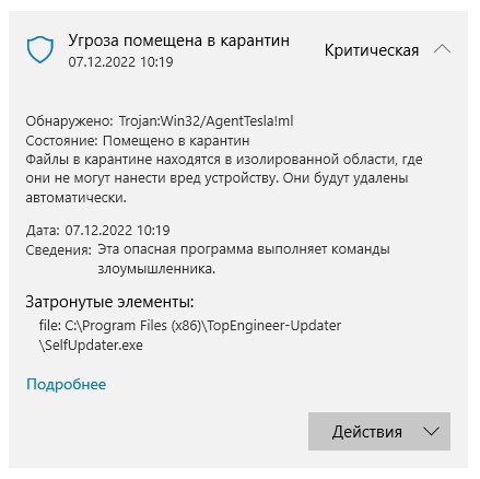 Защитник виндовс каждый раз при запуске WeldApp находит вирус Agent Tesla, при удалении файла SelfUpdater.exe, weldapp перестает работать. Кто-нибудь сталкивался с этим? Что посоветуете сделать?