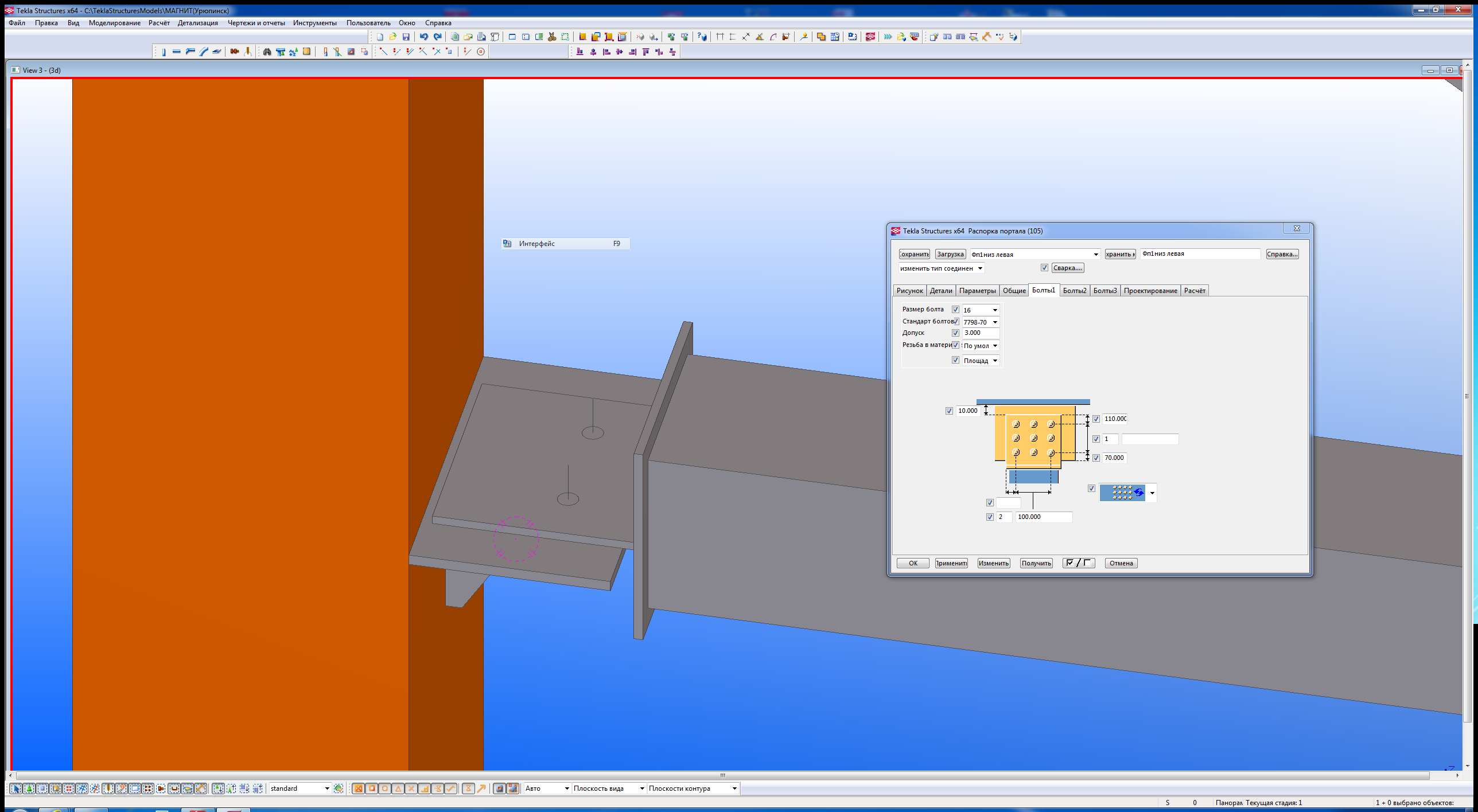 - существуют отдельные закладки "болты стенки" и "болт полки", а настройка состава болтового соединения ОДНА на все болты
