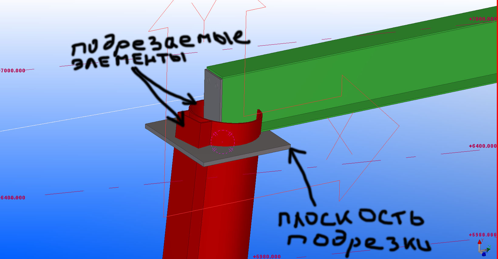 Никак не удается подрезать колонну по наклонной плоскости (оголовок в виде пластины). Приприменении указанных команд ничего не происходит. Помогите разобратся пжл.