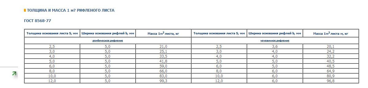 Отклонения не в справочниках, а в ГОСТ 8568-77 на рифленку.