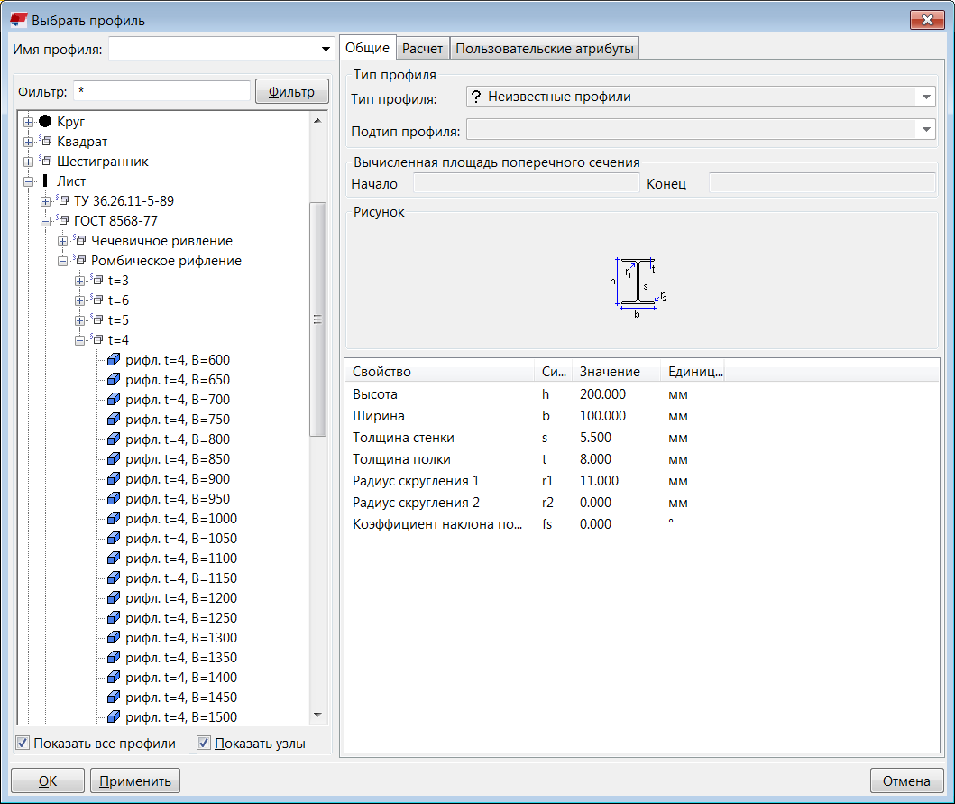 1) создаем в каталоге профилей отдельный фильтр на рифленую сталь, указываем гост