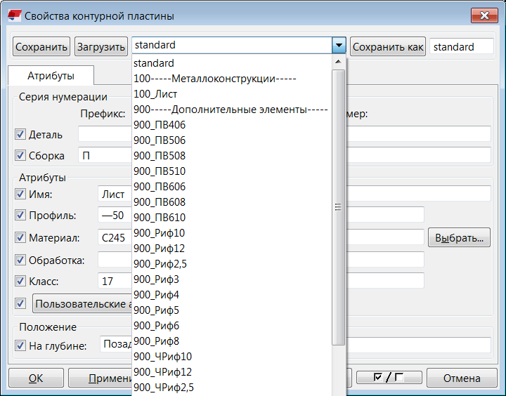 3) указываем профиль пластины из каталога профилей (пункт 1).