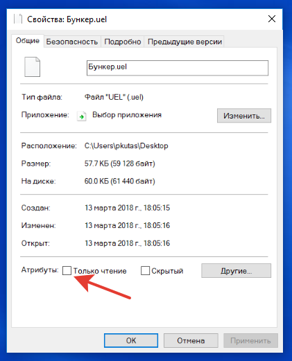 Можно ещё попробовать снять галку с "только для чтения", мало ли.