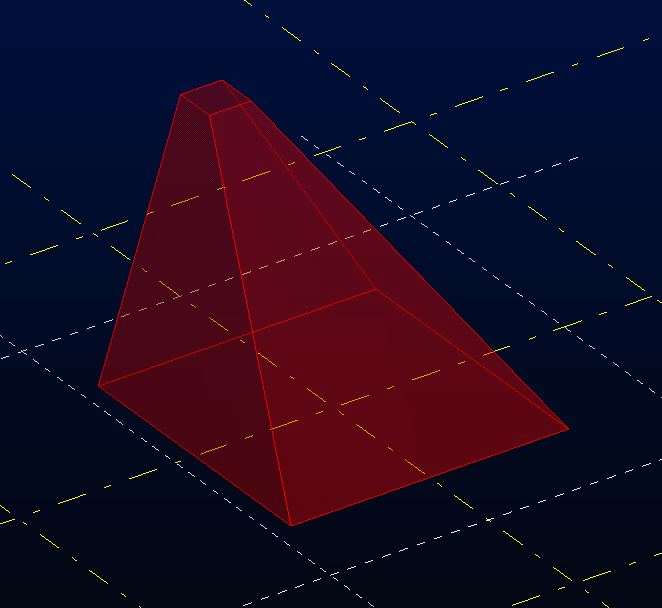 все добрый день. Поделитесь, как смоделировать пирамиду (нужно для бункера) , чтоб не строить из 4 граней, а одной командой. К примеру как усеченный конус профилем -EPD. Если такая возможность в проге?
