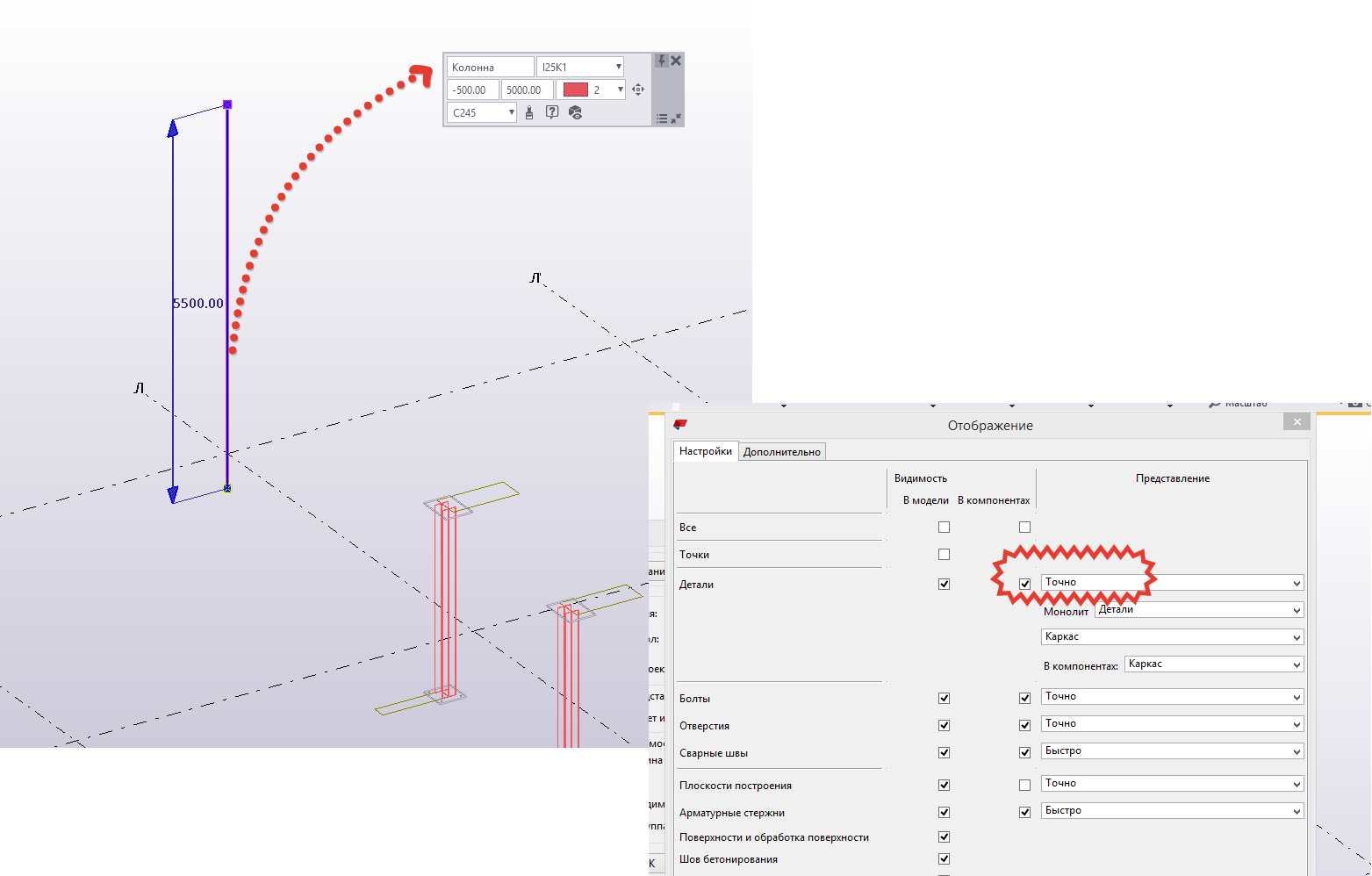 Подскажите, почему-то профили стали создаваться в модели опорными линиями (?тут вопрос, т.к. может и не ими...)-ранее созданные остались в своем представлении, а новые создаются линиями. Причем в свойствах модели отображение стоит нормальное