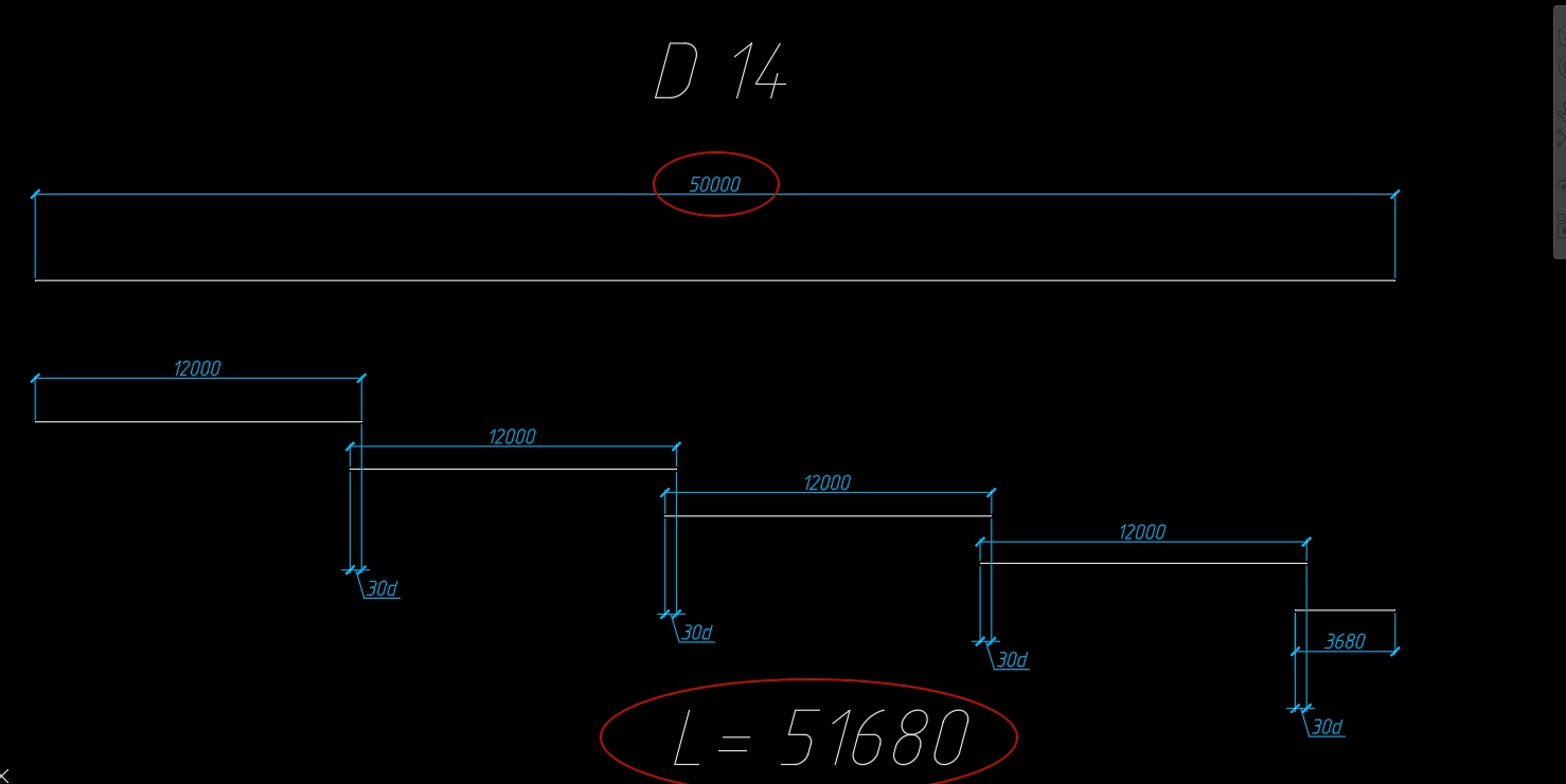 - арматура больше 12 м отображалась в погон. м, включая нахлесты (30d) через каждые 12 м по всей длине.