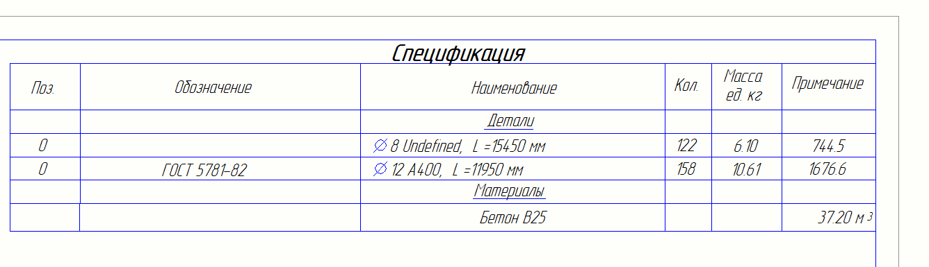 Хотелось бы сделать спецификацию для арматуры в пог. м . Хотель чтоб в конечном итоге все выглядело так: