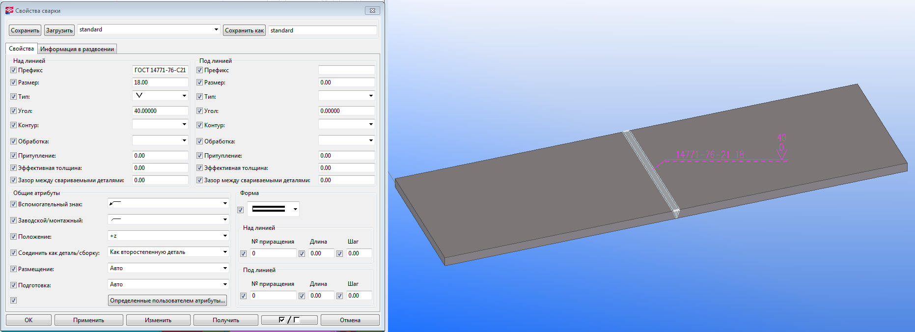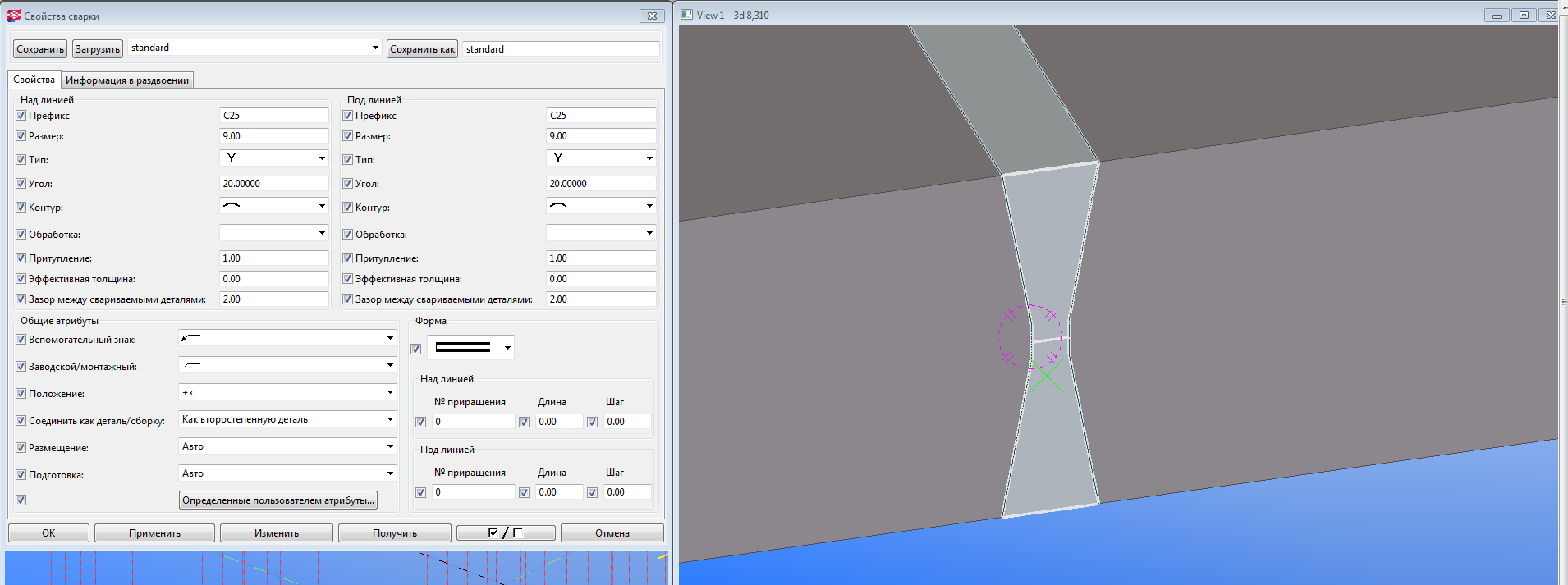 1. Создаю шов с разделкой кромок по ГОСТ, без зазора(с этим пока не разобрался);