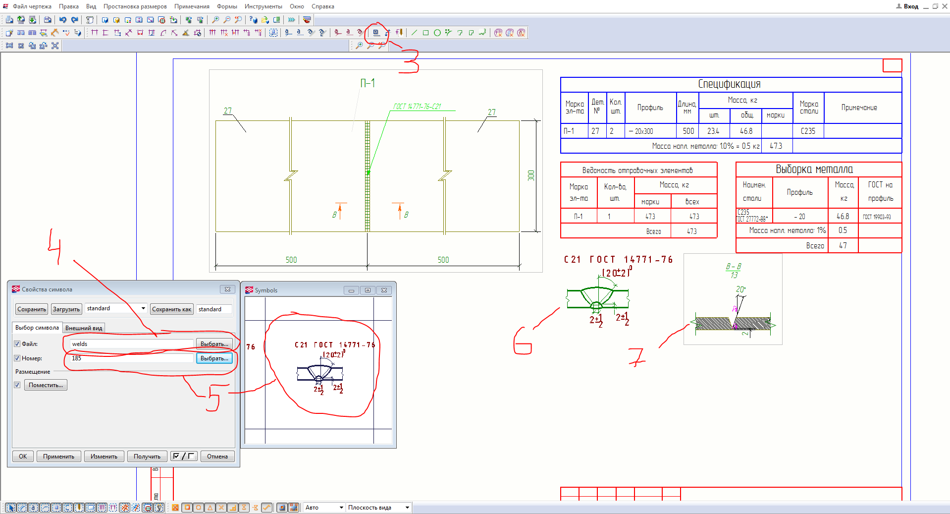 И еще есть библиотека 2d, там прям можно разгуляться с обозначением сварки