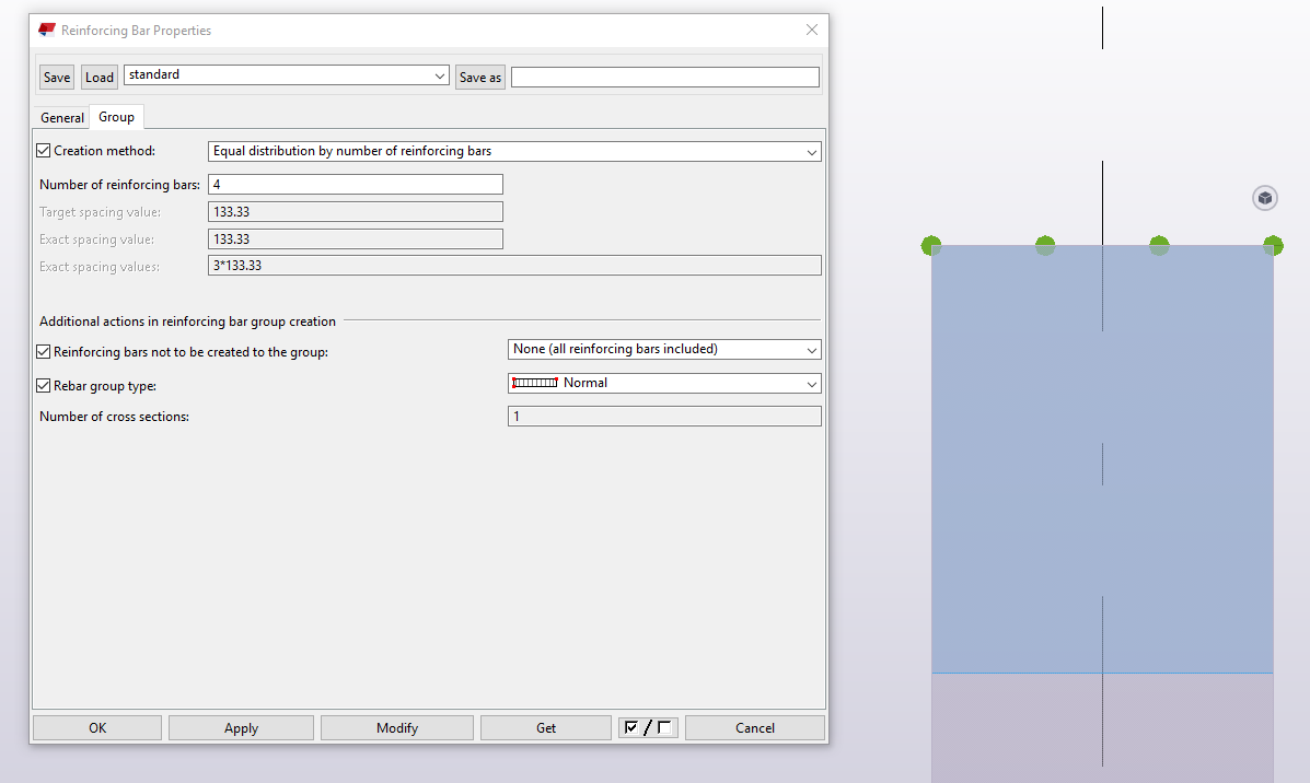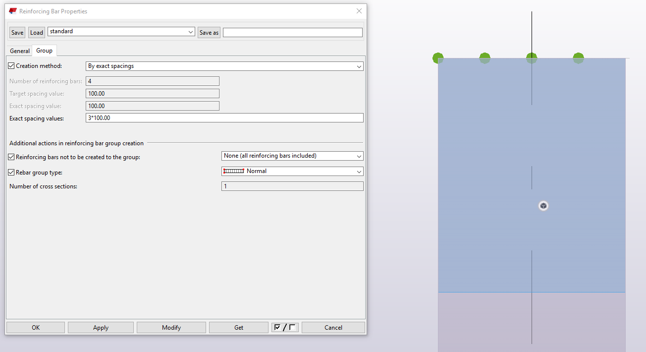 Если же требуется выдержать точный шаг 100 мм, что толщину покрытия со вкладки General стоит подбирать с учетом размещения необходимого шага и количества стержней. Иного решения я пока не вижу, возможно есть ещё