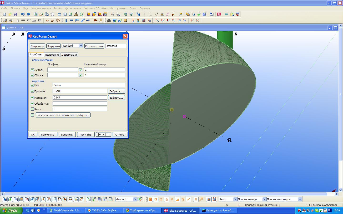 Сфера. Проблемы с обрезкой в Tekla Structures