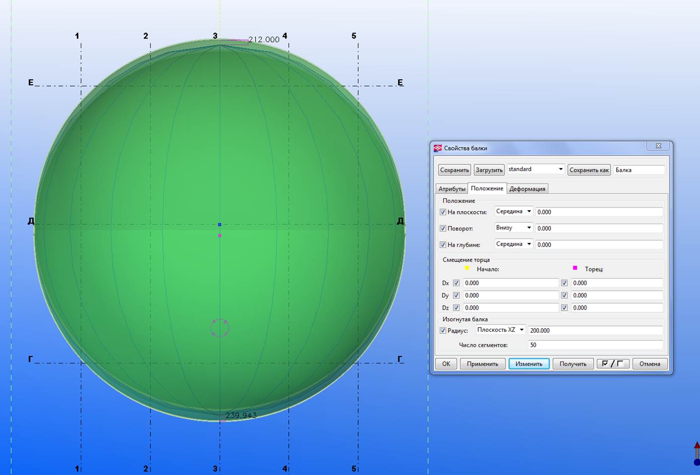 Имеем две балки из профиля труба, имеем сферу, их пересекающую.