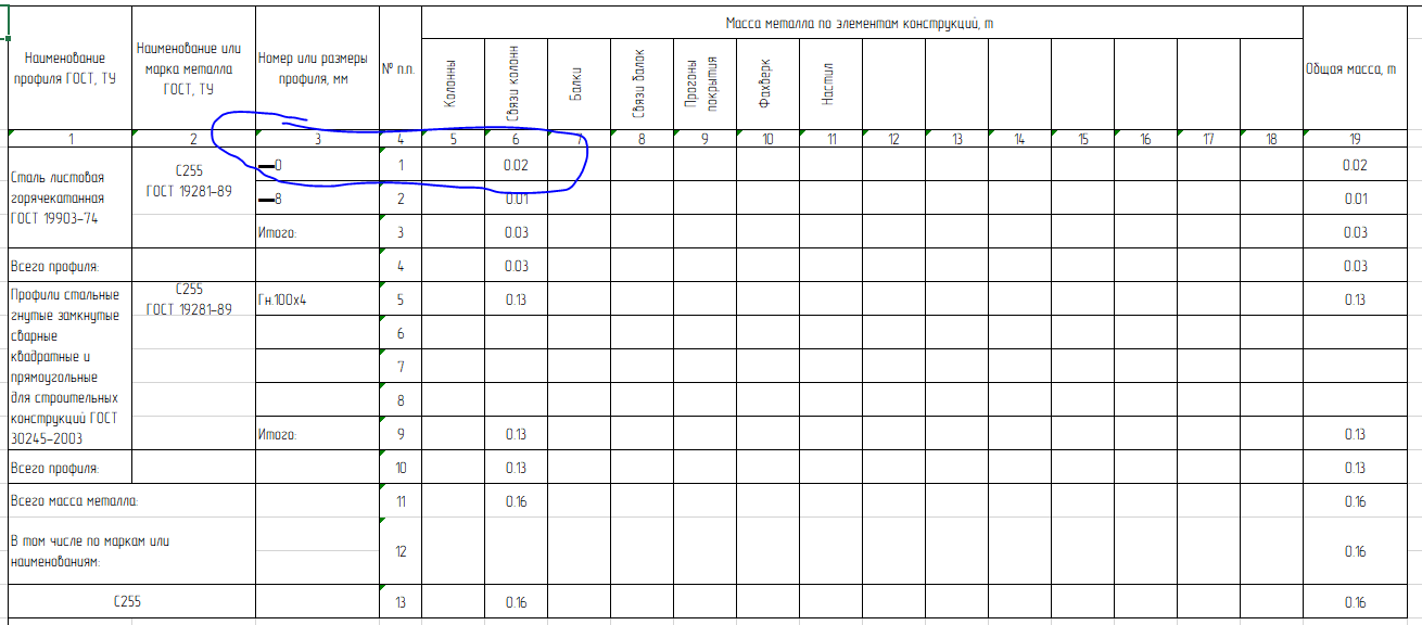 Re: Проблема создания полной спецификации металлопроката.