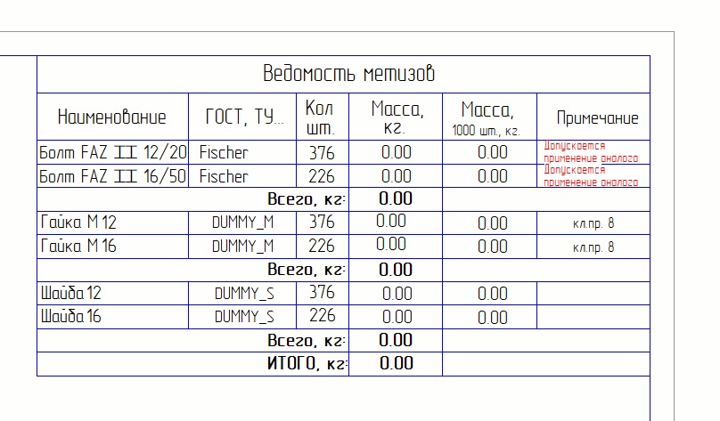 Как убрать DUMMY_M и DUMMY_S из ведомости метизов