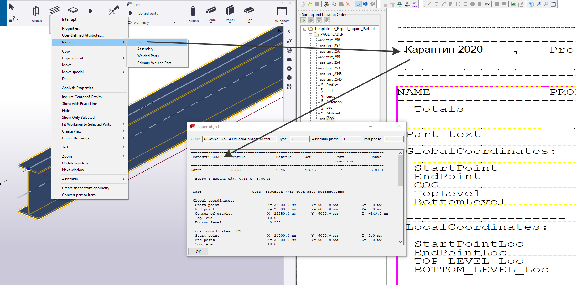 Запрос детали в Tekla Structures