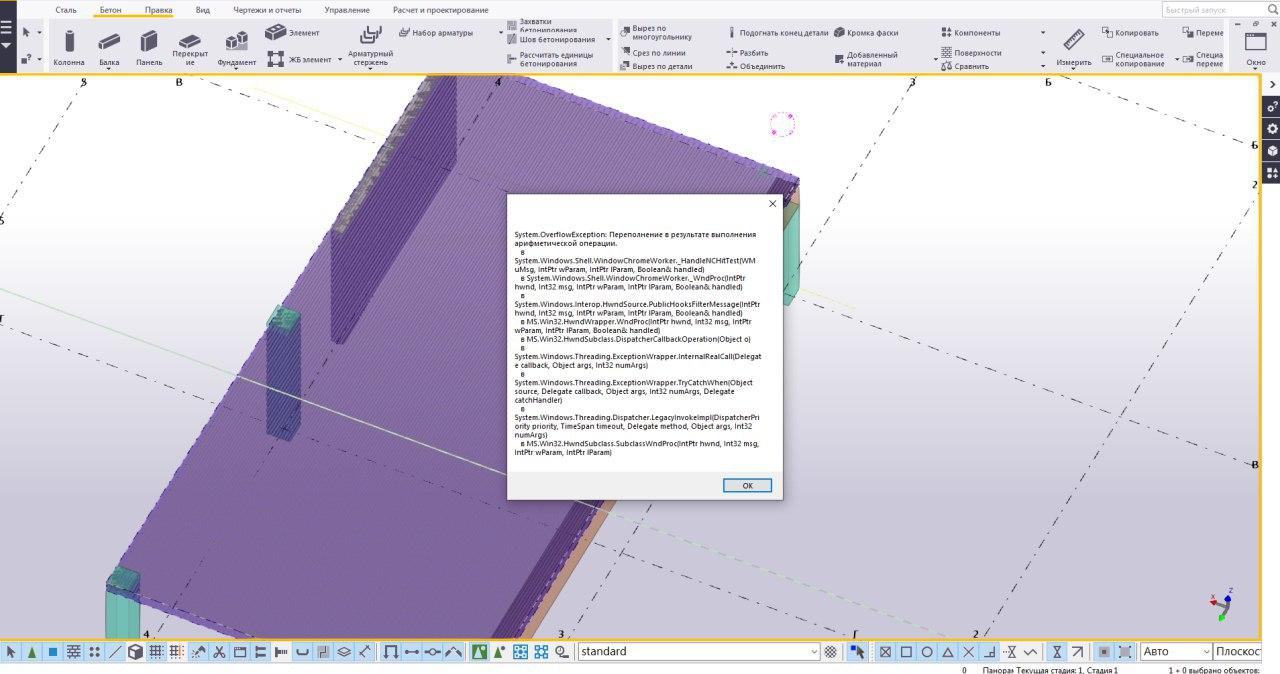 вылетает периодически такая ошибка в TS. первый раз было из-за выреза детали деталью. Второй раз было из-за перемещения точки плиты без вырезов. Третий раз из-за армирования компонентом "Стержни сетки"