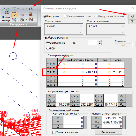 Еще удобно пользоваться функцией "Суммирование нагрузок". Она располагается на панели "Инструменты" в ленточном стиле отображения интерфейса. Ее удобно использовать так же для контроля задания нагрузок на схему.
